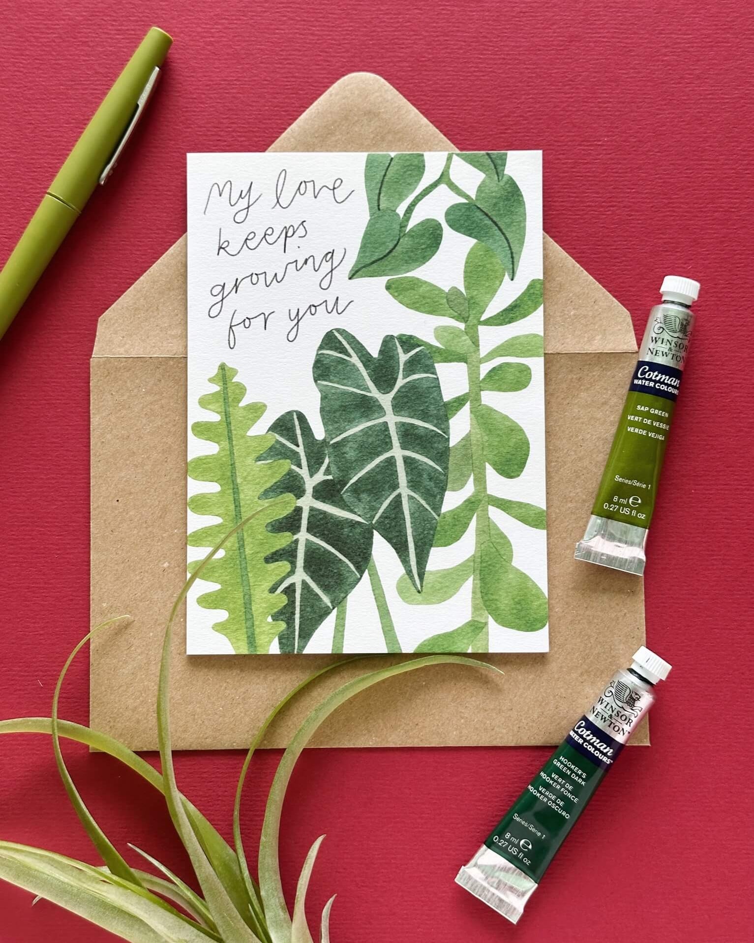 Express your love in a new way with a botanical card inspired by the great outdoors. Whether it’s your 6-month or 60-year anniversary, write down your innermost thoughts and feelings (or something funny) in a unique, high-quality card. Browse vibrant floral and houseplant designs waiting for your leafy message of love – let them know you want to grow old with them (and that you love them more than plants!).