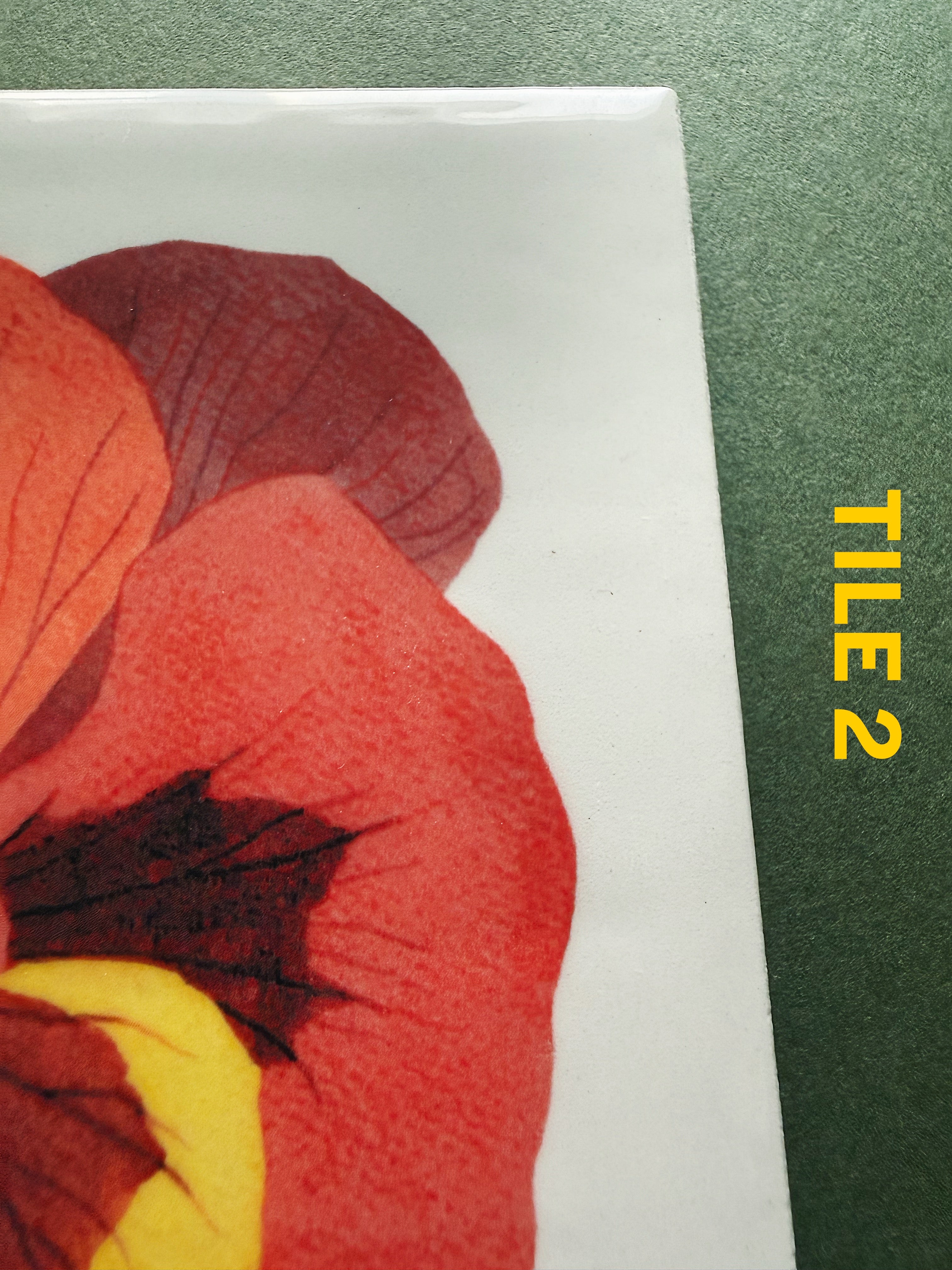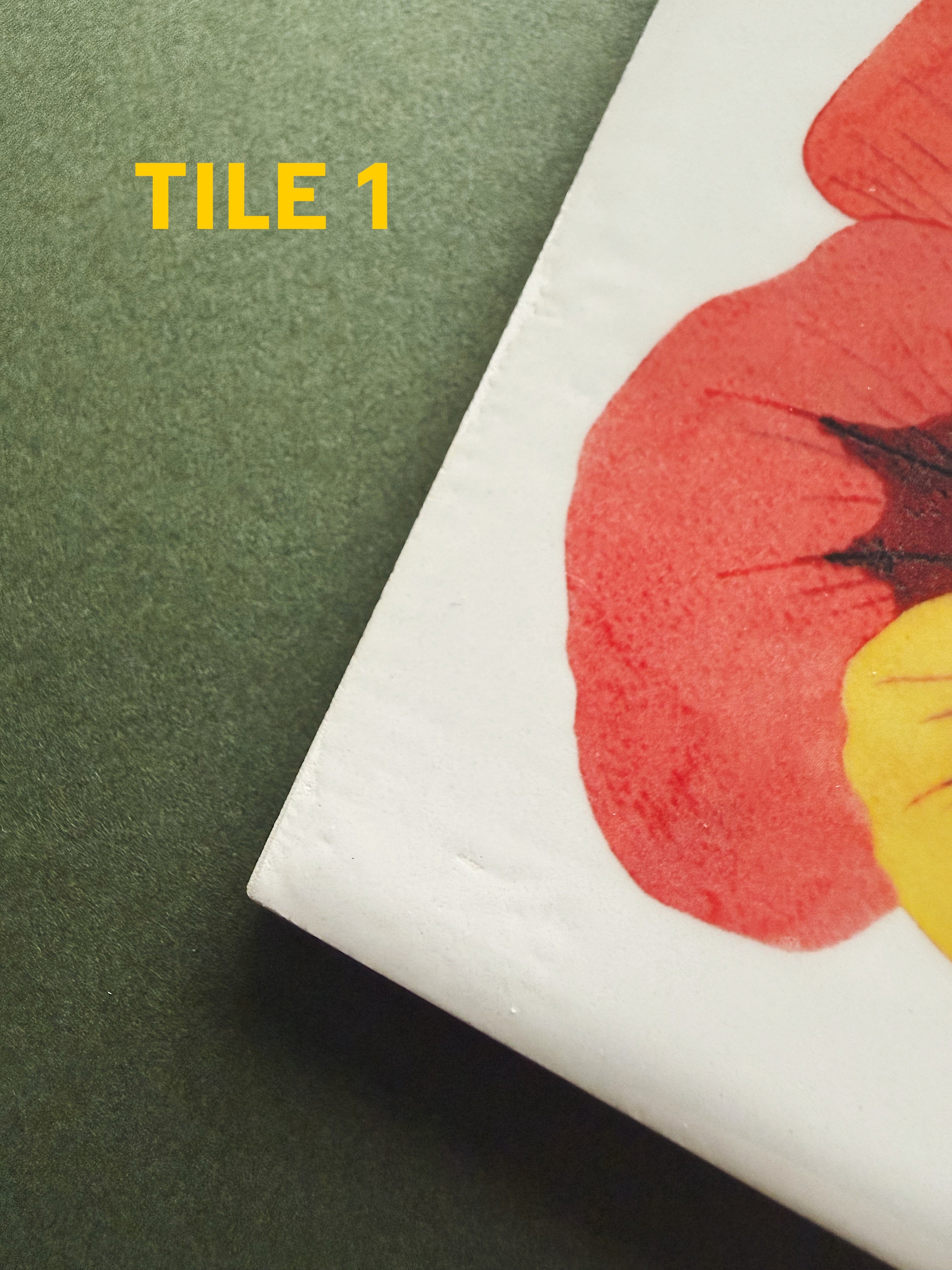 Tile 1: Glaze imperfection — not glazed right up to the edges.