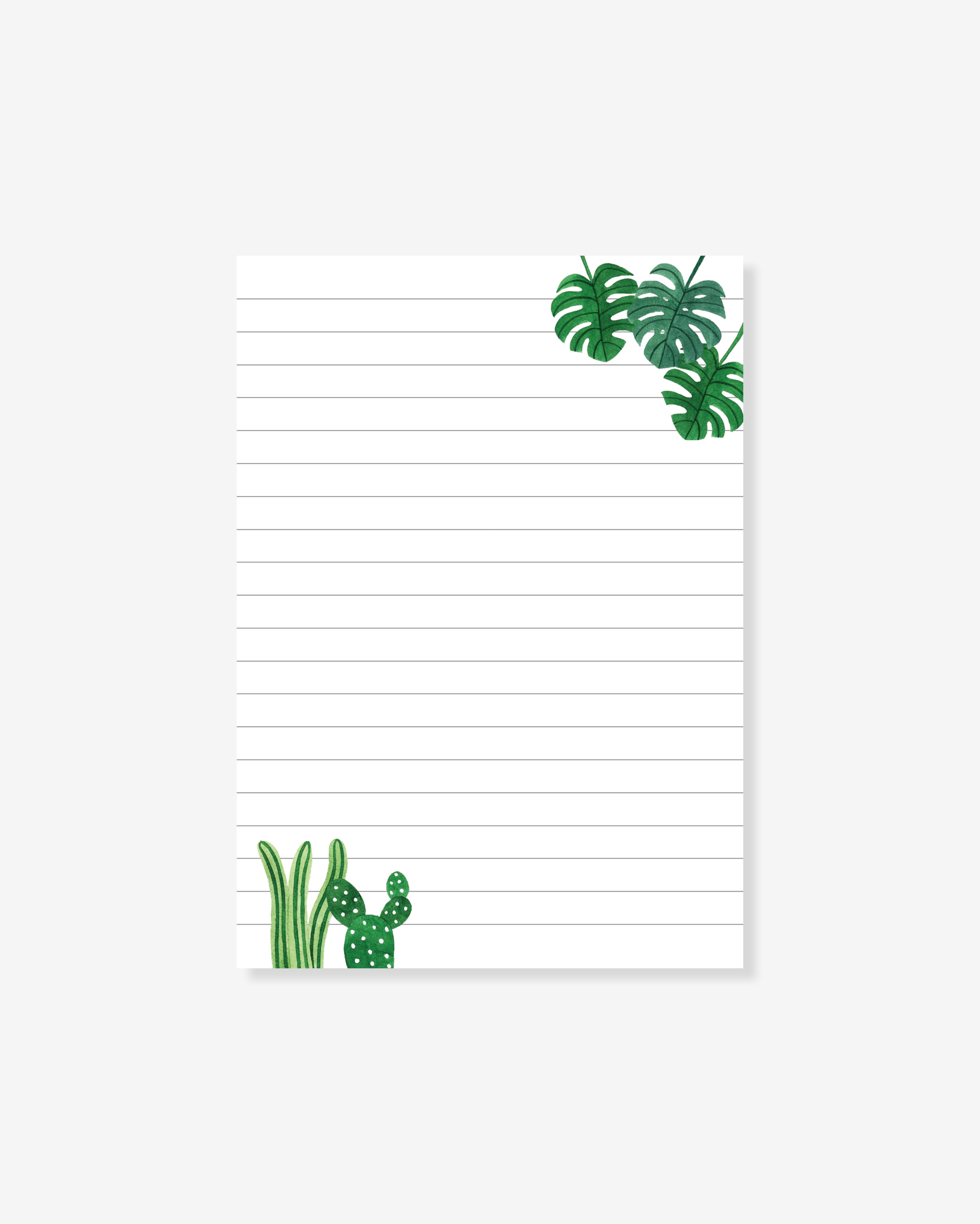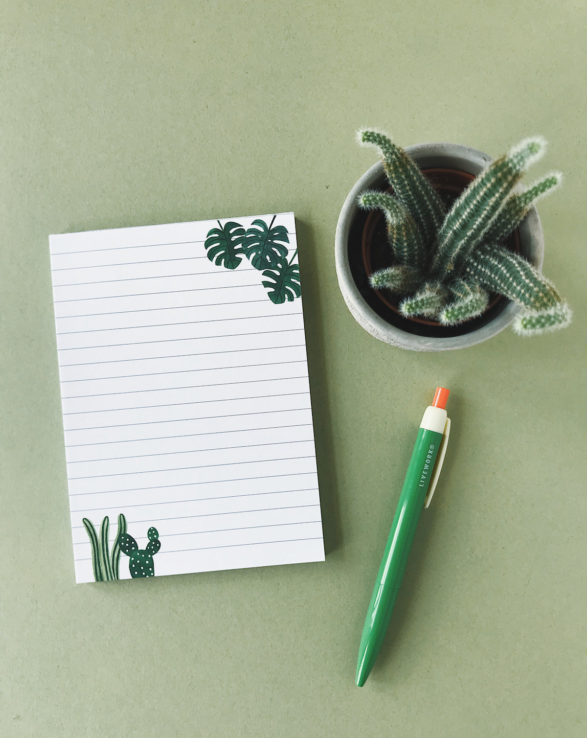This pocket sized desk pad features monstera deliciosa and cacti on two corners. Perfect for to-do lists and memos, or as a gift for your plant loving friend!