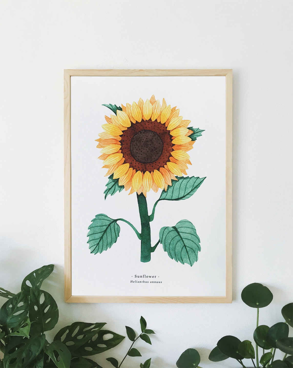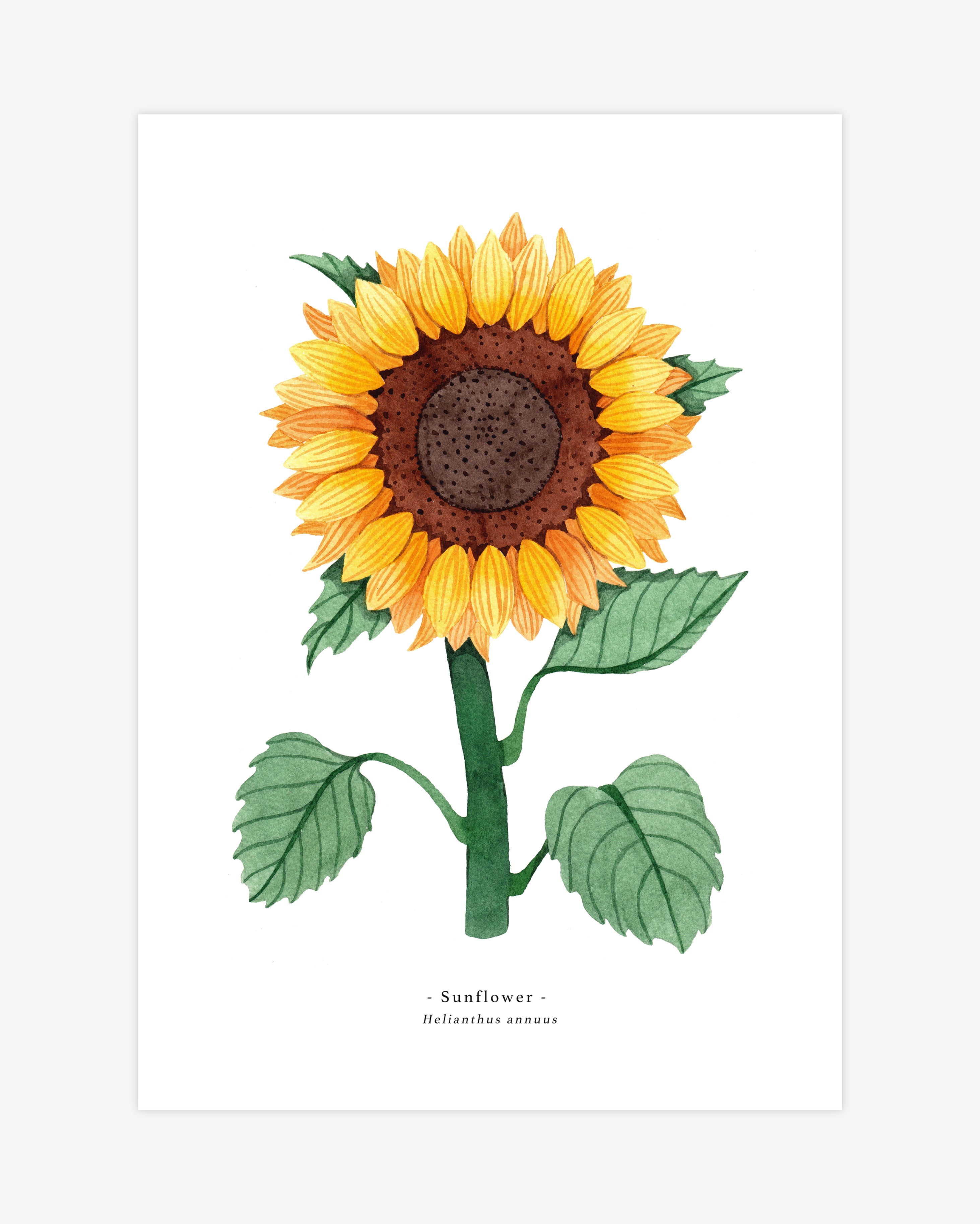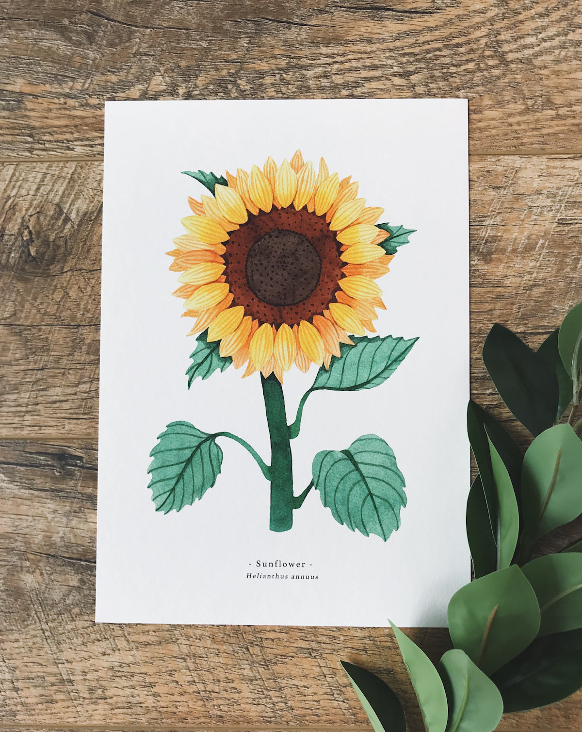 Inspired by a visit to a sunflower field in France, this print is from an original watercolour painting. It makes a standout gift for gardeners and sunflower admirers. With vibrant colours and beautiful details, it's sure to delight the eye and bring happiness to any room in the home.