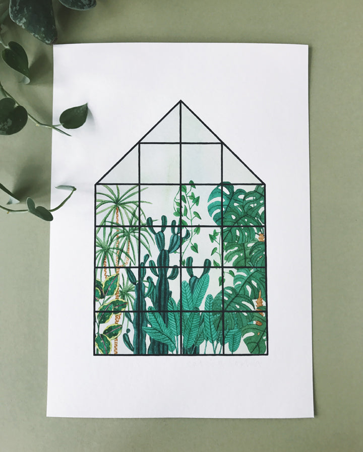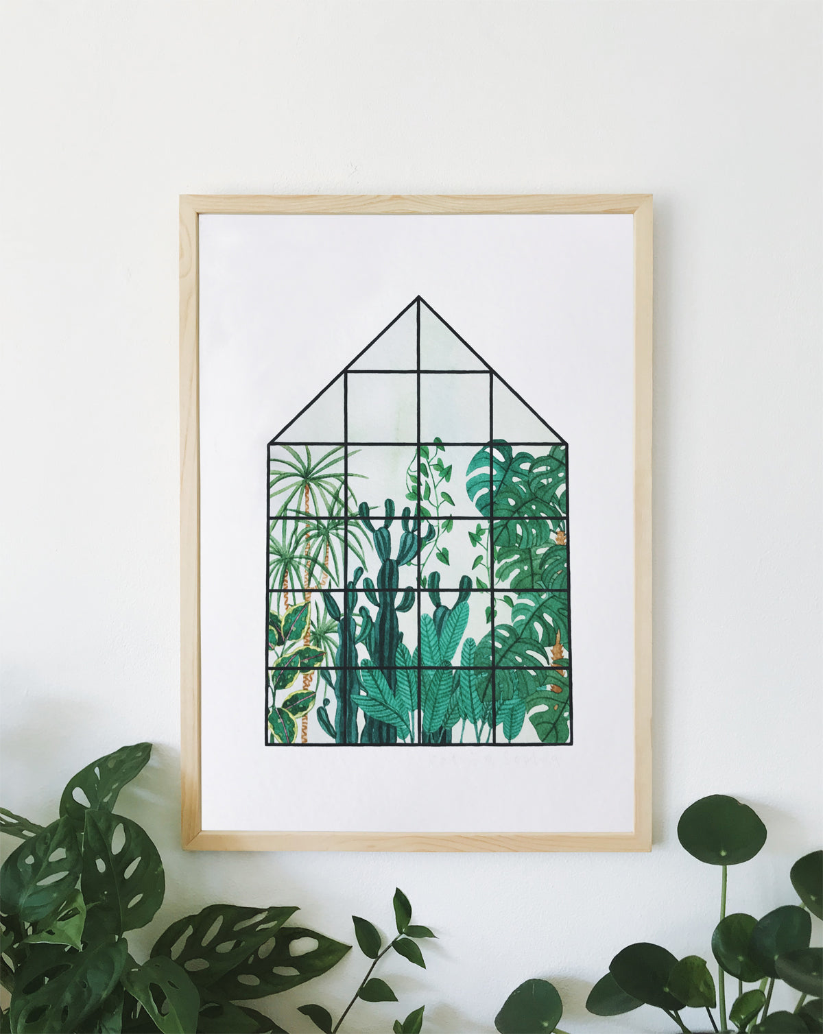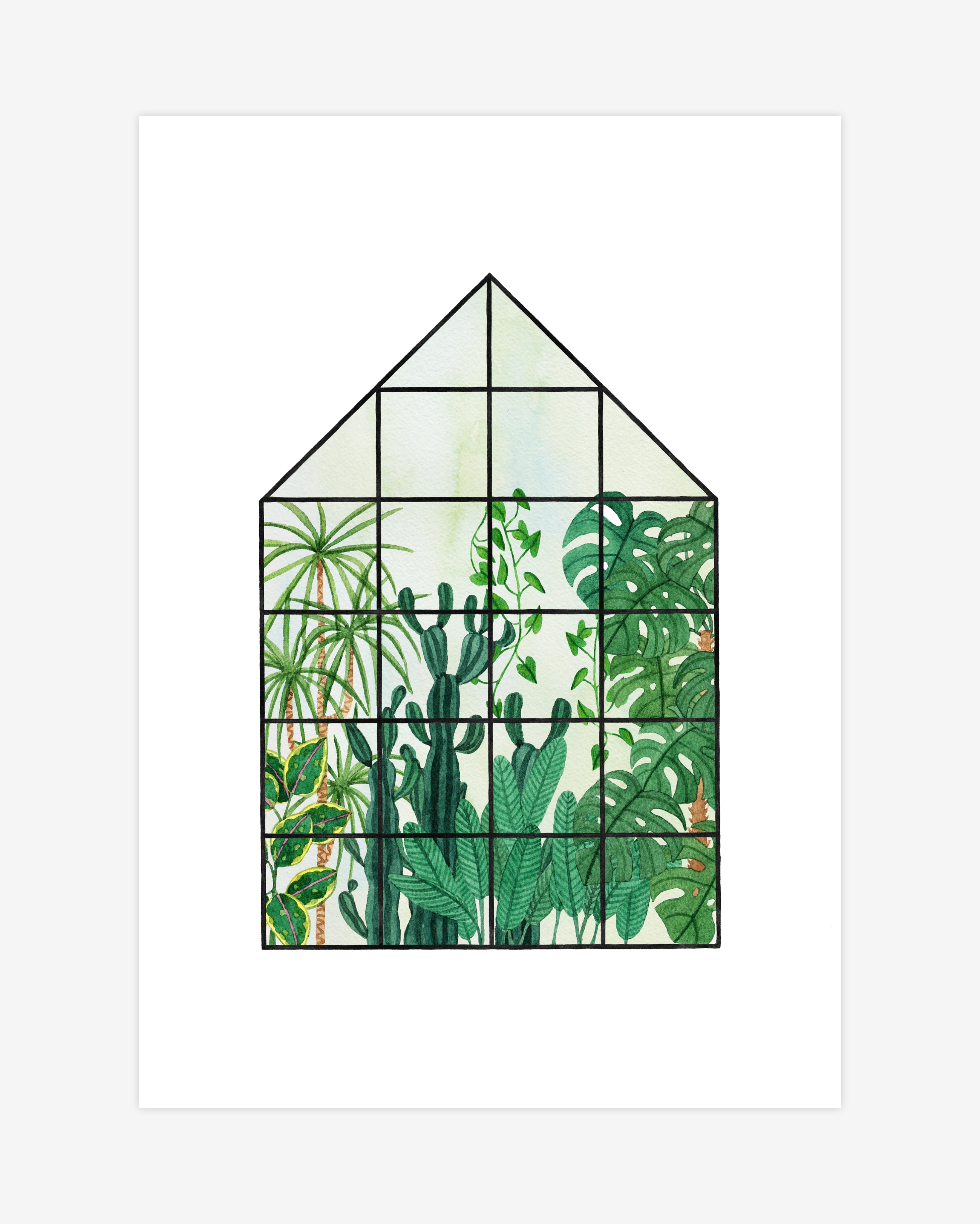 This print, showcasing a tropical greenhouse complete with lush plants, is an ideal present for plant aficionados. Bringing the beauty of nature into any space, it's sure to be a gift that's well-loved. This vibrant print will instantly brighten up any home or office.