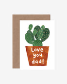 White lettering ‘love you dad’ on a terracotta orange planter containing a cactus, painted with watercolour. Perfect for cactus loving dads!