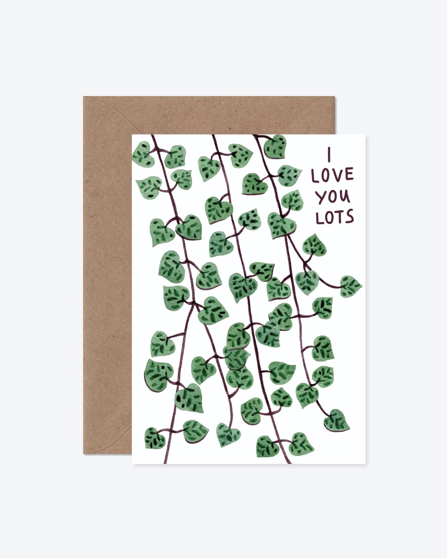 The design shows a cascading string of hearts with several heart shaped leaves representing the message of this romantic card - ‘I love you lots’. This card is a thoughtful way to express your affection for a special someone. Its intricate design will be a memorable and precious reminder of your love!