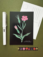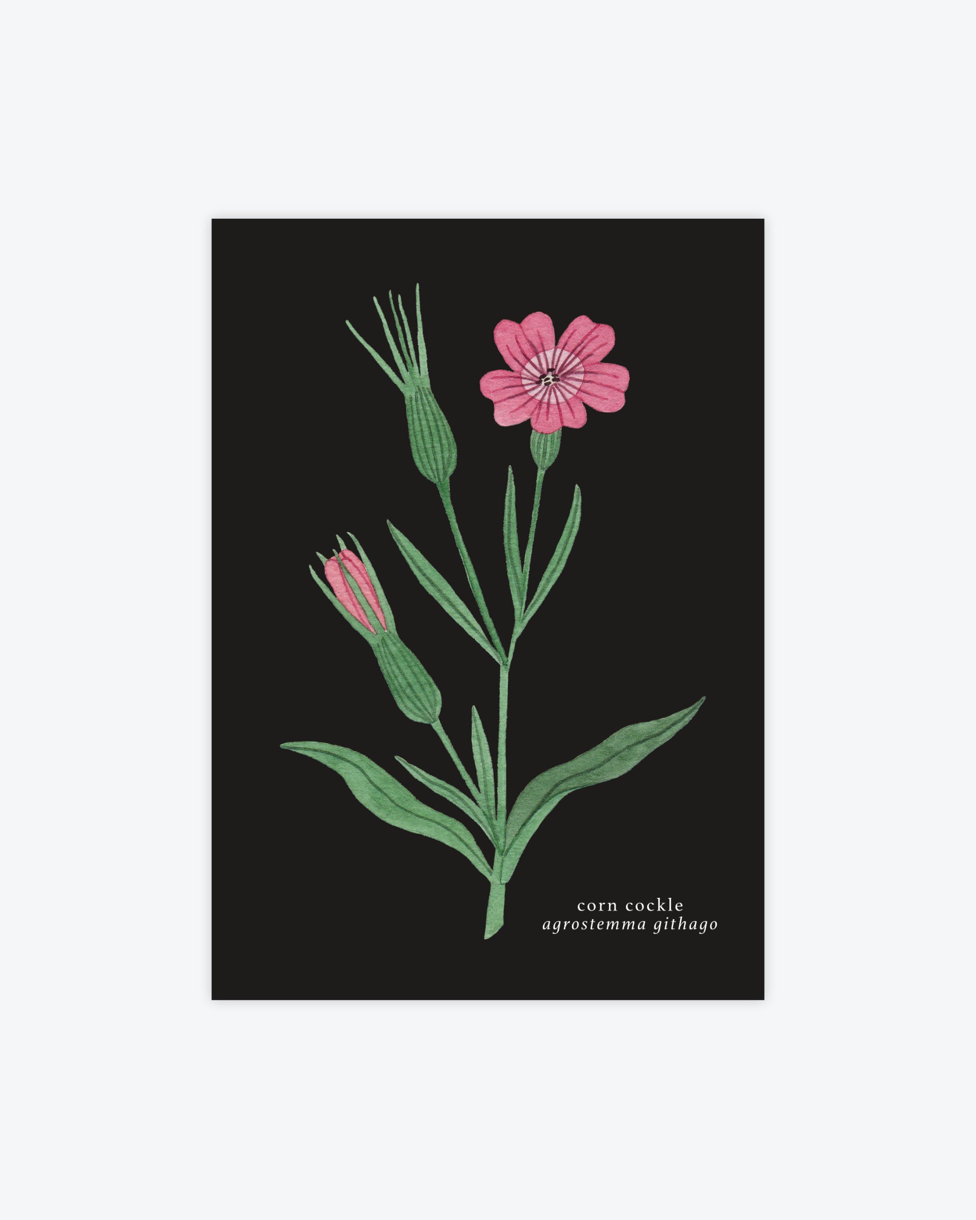 This stunning postcard features a watercolour painting of a pink corn cockle flower. Ideal for framing or sending to a loved one, it captures the beauty of a wild flower for everyone to enjoy.