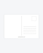 This postcard has been upgraded to a sturdier paper stock. It is glossy and scratchproof on one side, and uncoated on the other side, providing you with an easy writing surface. Additionally, there is a new space for the address and stamp!