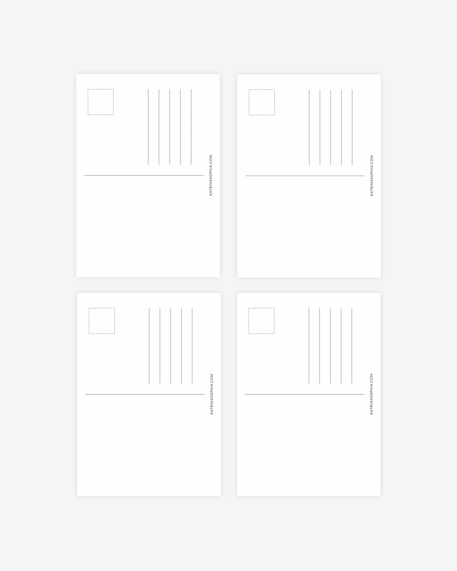 These postcards have been upgraded to a sturdier paper stock. It is glossy and scratchproof on one side, and uncoated on the other side, providing you with an easy writing surface. Additionally, there is a new space for the address and stamp!