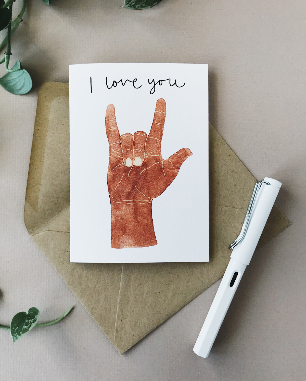 Express your romantic feelings with this I Love You Sign card. This sign is from American Sign Language, but it is popular with deaf people all over the world. It is a beautiful way to share your emotions with someone you care about and is sure to make a lasting impression.