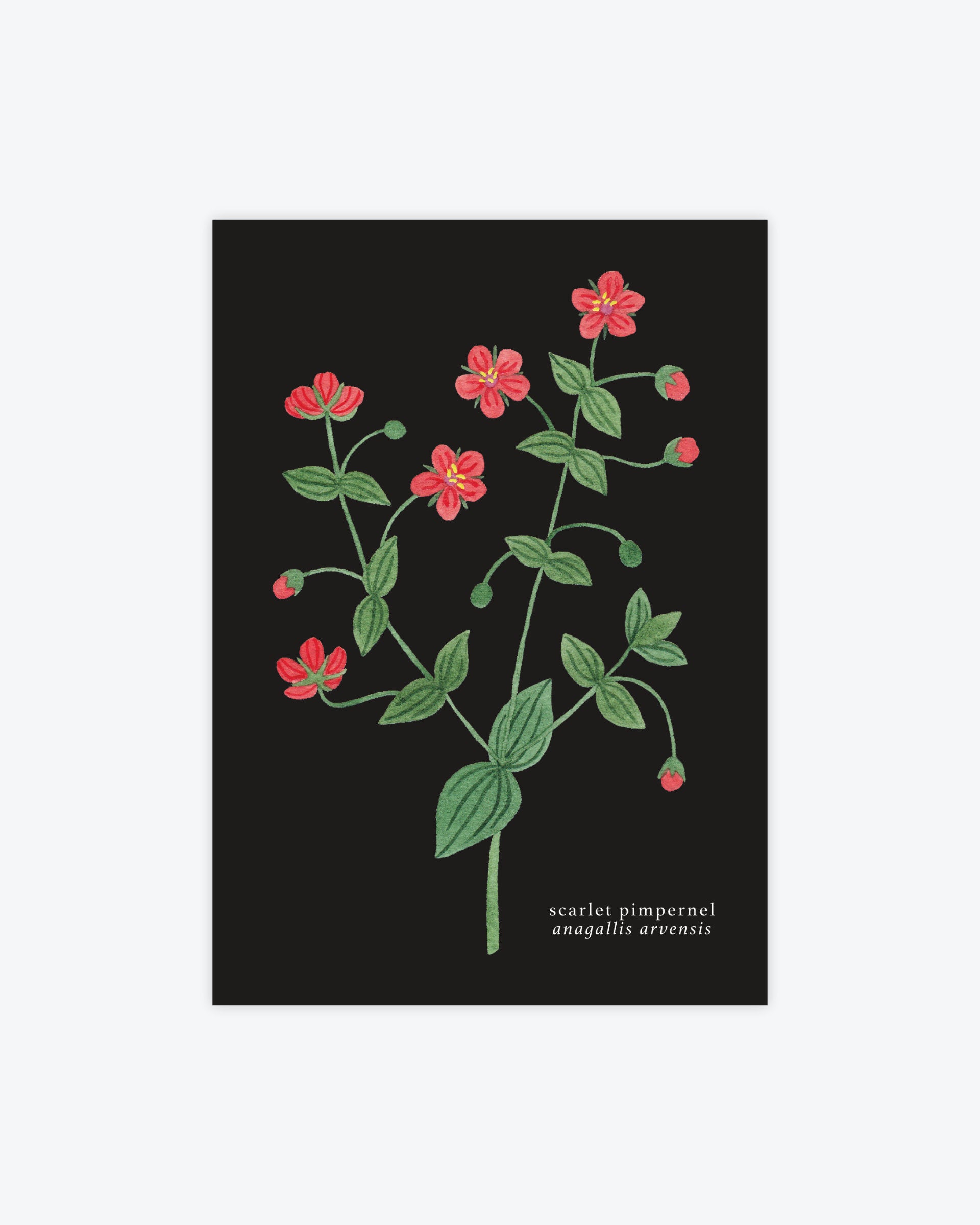 This stunning postcard features a watercolour painting of a scarlet pimpernel flower. It's perfect for a special note, or to keep as a small reminder of the beauty of nature.