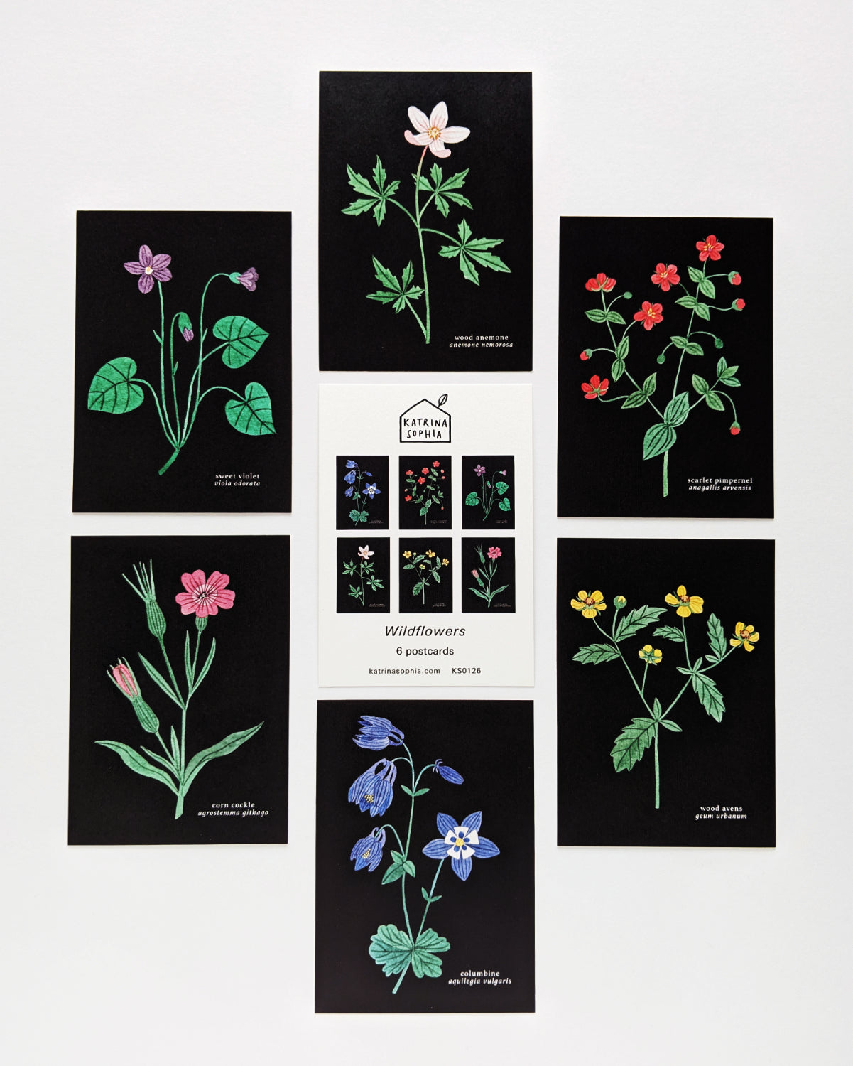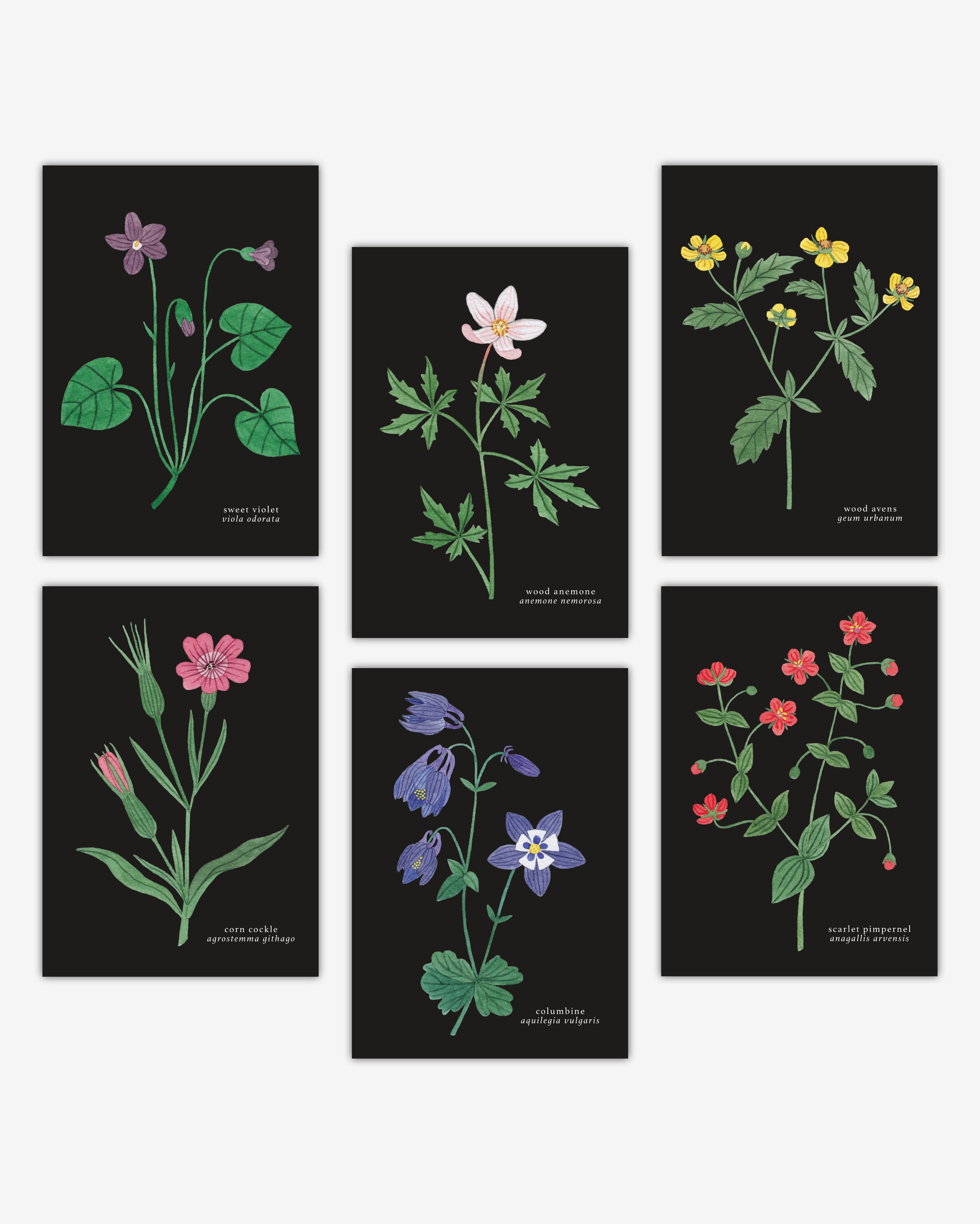 As a part of the 'Wildflowers' collection, this postcard set is designed with a Victorian botanical vibe in mind. The six designs consist of watercolour wildflower paintings on a dark background, with titles in contrasting white text. Your special someone will adore this floral present! Whether sent in the mail or kept to decorate, these postcards will bring joy and appreciation.